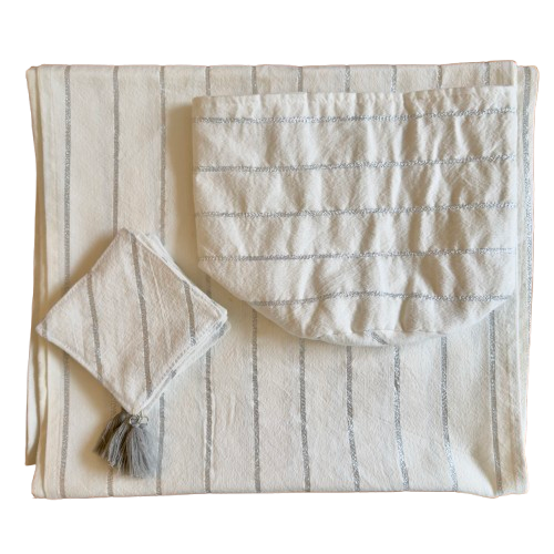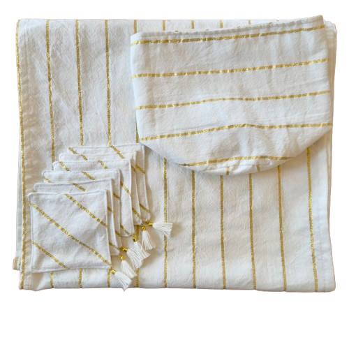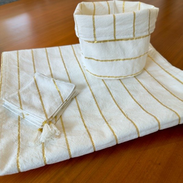 La textura suave del Tusor y el brillo sutil del lurex crean una mesa cálida, elegante y bien compuesta, ideal para celebraciones o para sumar un detalle especial en el día a día.