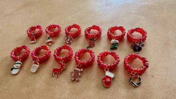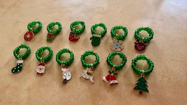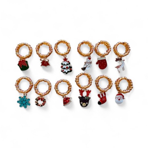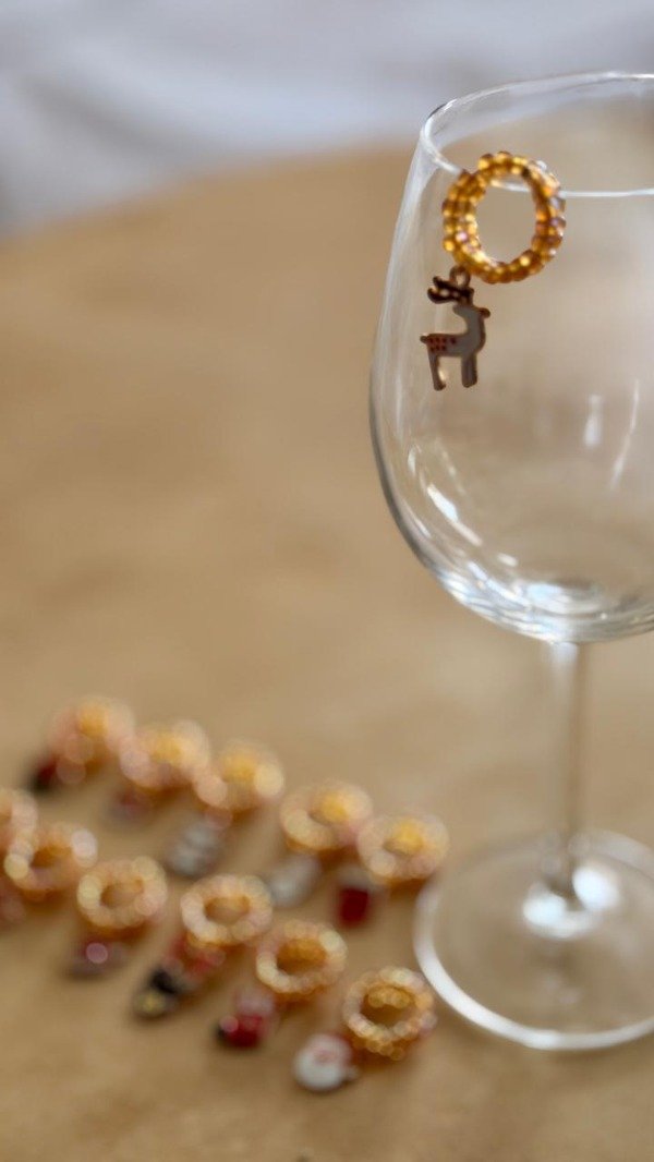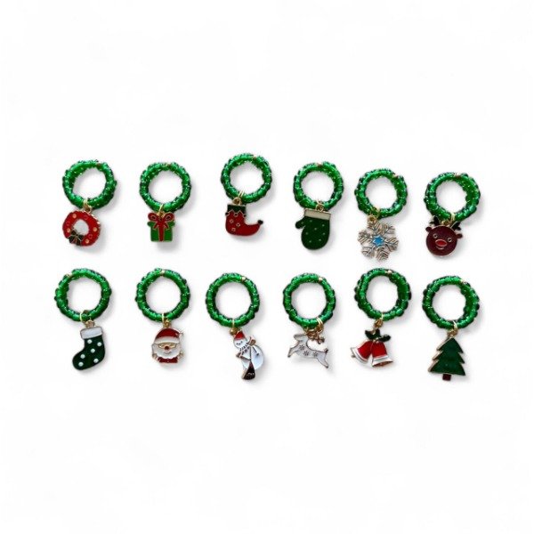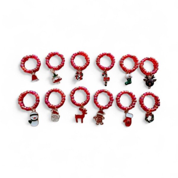 12 marcadores de copa o vasos con motivos navideños. Son piezas úicas y artesanales.Ideales para agregar un toque divertido a tu mesa.